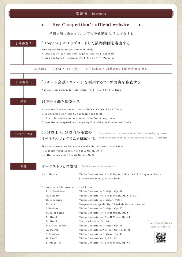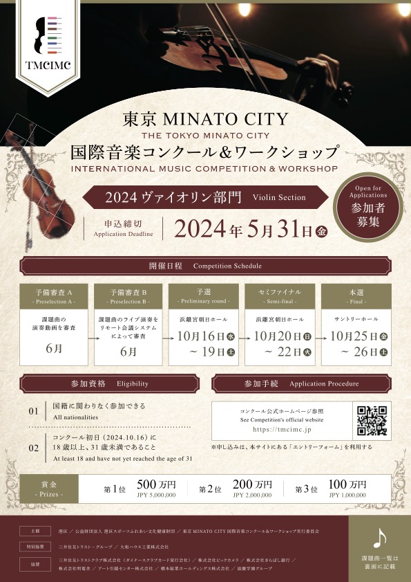 A brand-new, one of the largest scale of competitions in Japan in classical music has recently been established in Tokyo, Minato city and now ready to accept applications for Violin 2024!